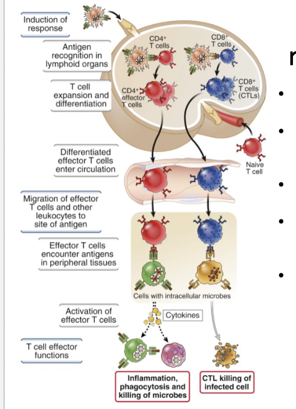 Ræstar angafrumur ræsa óreyndar T frumur sem bera TCR viðtaka sem þekkir MHC peptíðbútinn úr sýklingum sem þær sýna