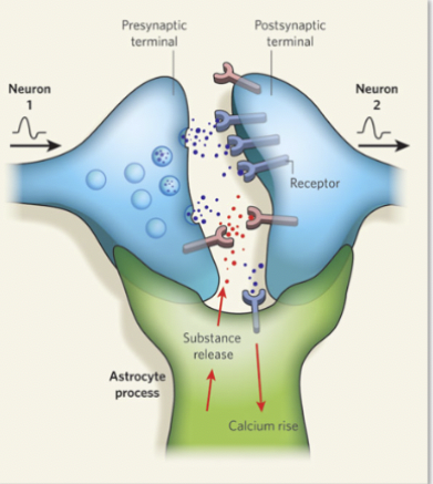 When Ca++ increases, leads to a regulated release of gliotransmitters: