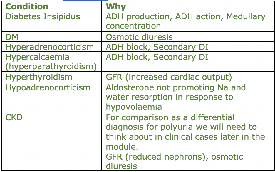 list endocrine conditions associated with polyuria and their associated mechanisms