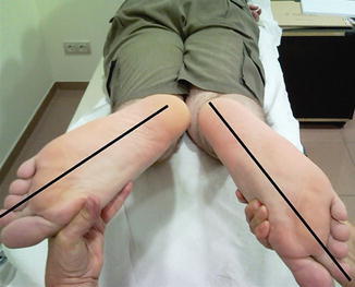 posterior sag sign: patient lies supine with hips and knees flexed to 90°, examiner supports ankles and observes for a posterior shift of the tibia as compared to the uninvolved knee