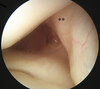 * If there is pain, mechanical symptoms, meniscal tear or detachment, arthroscopic debridement and saucerization is indicated. The aim is to preserve a rim of normal meniscus.