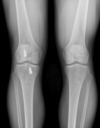 * * discoid lateral meniscus. Radiographic findings can include lateral joint space widening, squaring of the lateral condyle, cupping of lateral tibial plateau and hypoplasia of the lateral tibial spine.