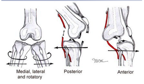 What at the 6 possible directions of knee dislocation?