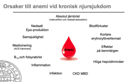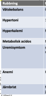 Anemi kan komma vid CKD 3-4 pga sänkt EPO-produktion och flera andra faktorer. De flesta andra symtom och komplikationer på lab vid CKD kommer vid CKD 4-5.