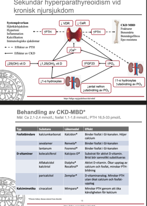 Sekundär hyperparathyreoidism pga CKD leder tilll CKD-MBD obehandlat (CKD - mineral bone disorder).
