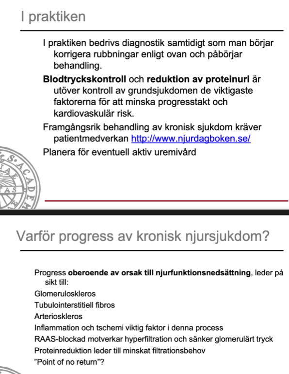 Vilka är dem 2 viktigaste parametrarna att behandla förutom grundsjukdomen till CKD, för att minska progress och kardiovaskulär risk?