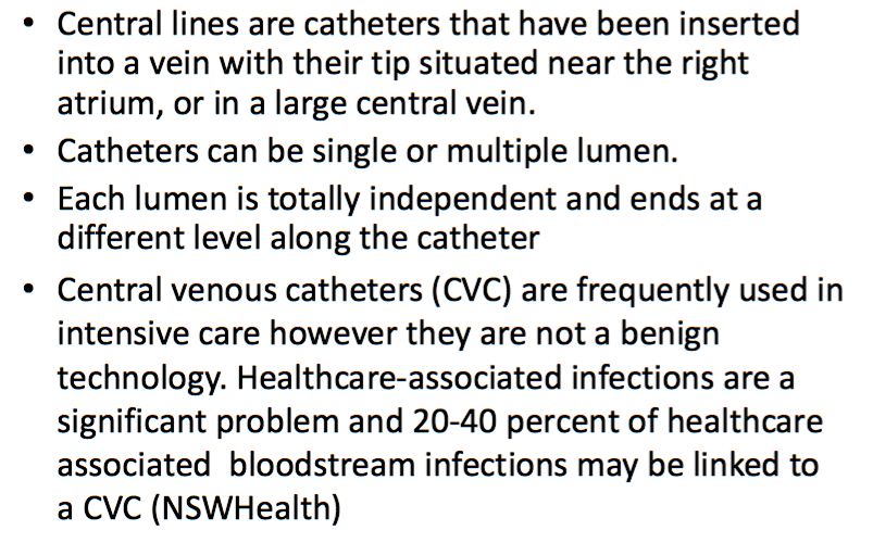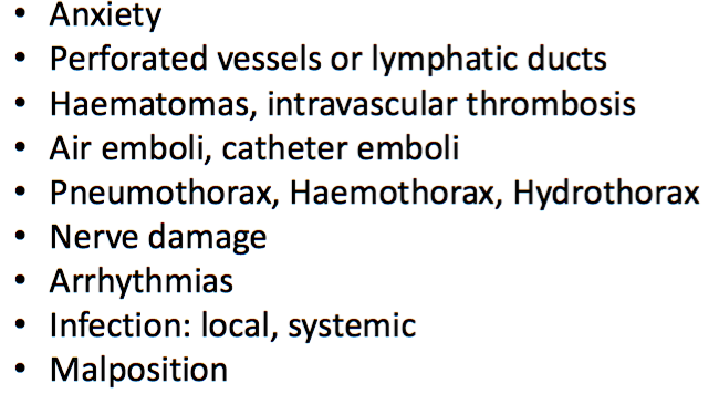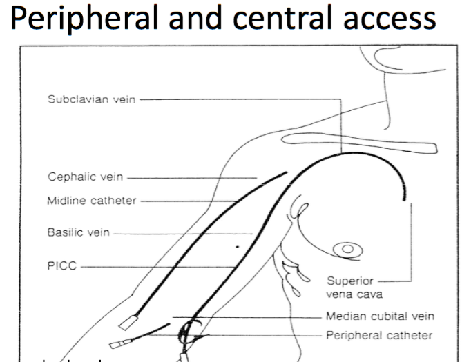 • Administration of medications • Fluid and electrolyte replacement • Caloric replacement (TPN) • Administration of blood products • Supplement fluid for patients who are unable to swallow adequate volumes • Access line in an emergency