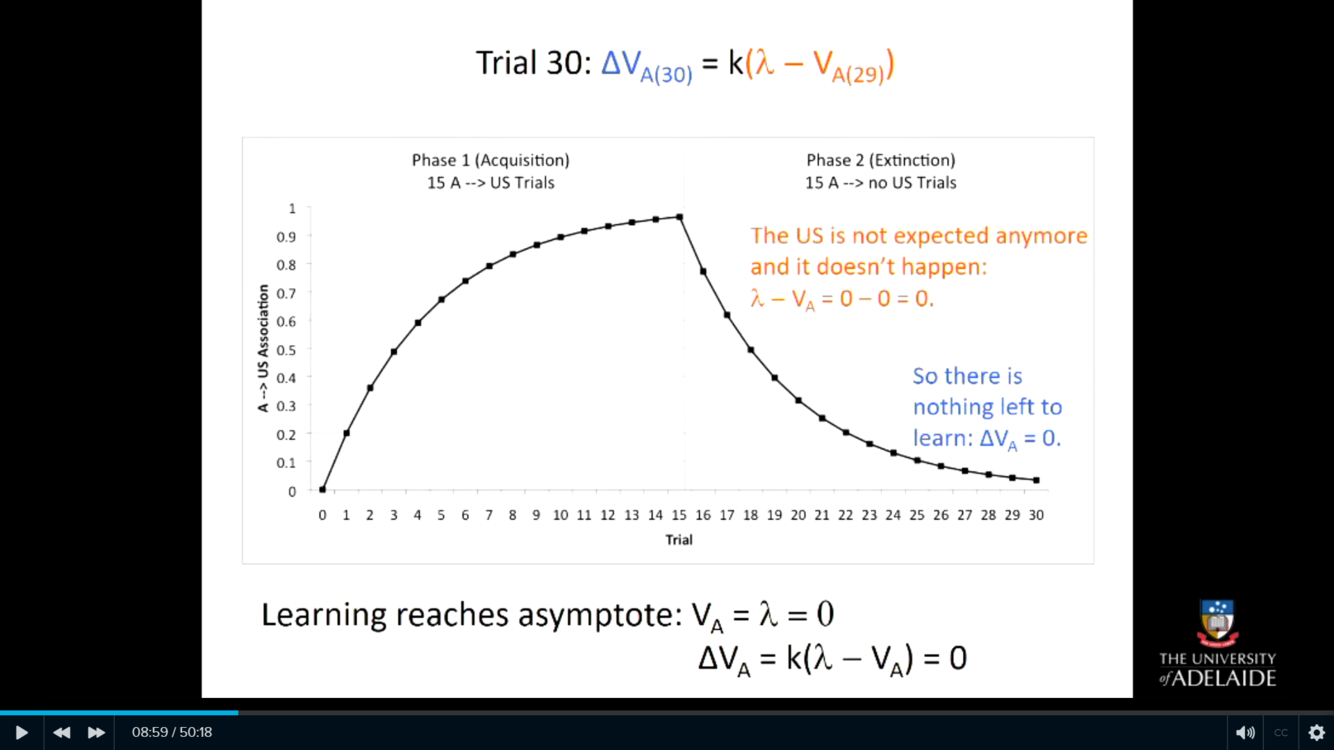 This is because the animal is very surprised that what it was expecting didn’t happen. The more the US is shown without the CS the more extinction will happen but a decreasing acceleration rate.