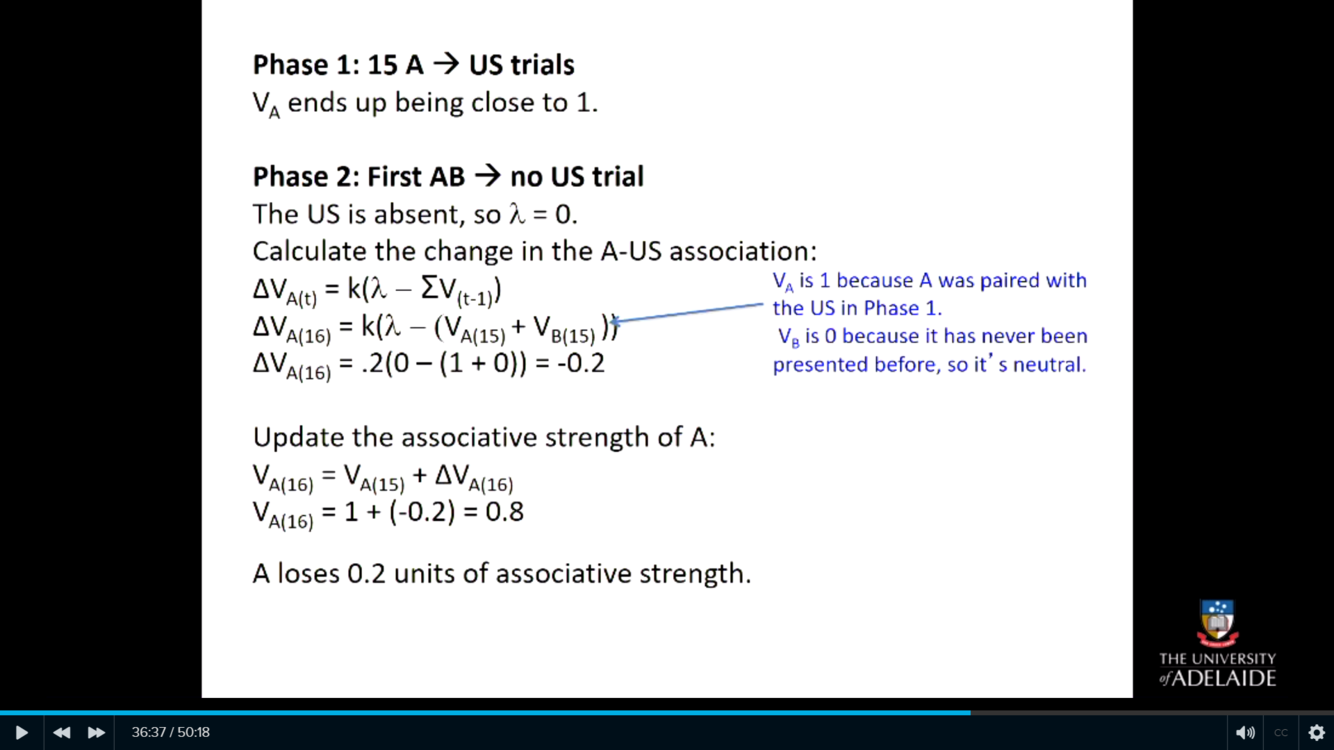 They changed the expected outcome formula to be the sum of the associative strengths of ALL CSs present on the trial t.