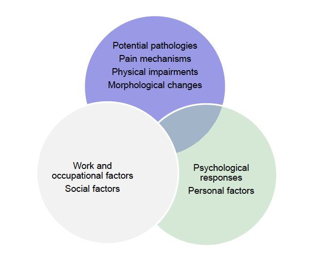 What are 5 work factors of biopsychosocial framework?