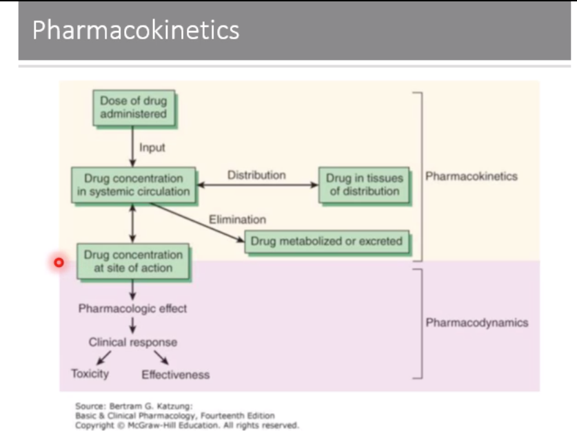 the processes occurring within the body that affects how much drug will reach the site of action and impact the pharmacodynamic effects.