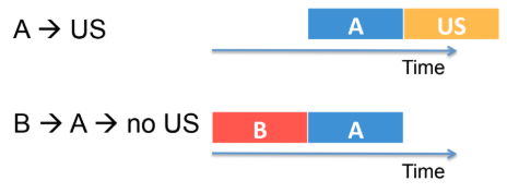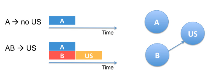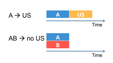 B develops a hierarchical inhibitory association that inhibits the A-US association.