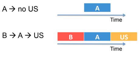 Rescorla-Wagner would predict B to be an inhibitor, it does not count for presentation order of the stimulus.