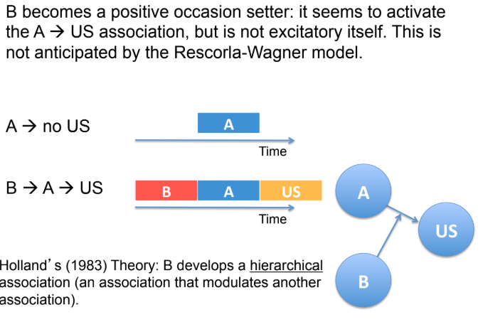 Occasion setters might develop both a hierarchical association and a direct association with the US simultaneously. The two associations might have opposite effects.