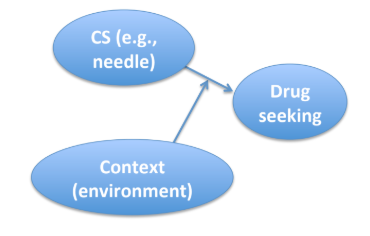 CS -> anxiety associations in phobias, or CS -> craving/tolerance responses in drug addiction.