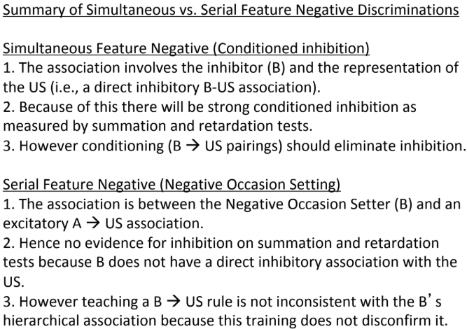 Serial feature negative discrimination (negative occasion setting)