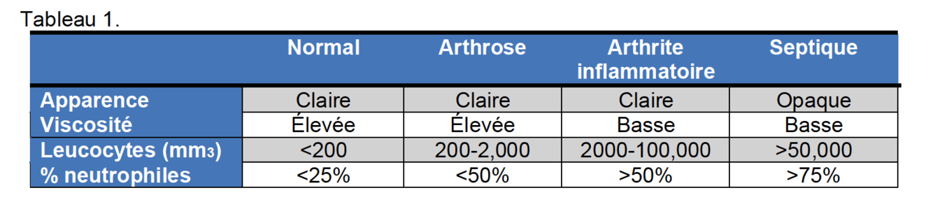 Face à une monoarthrite, la ponction articulaire pour l’analyse du liquide synovial est la procédure diagnostique la plus importe en clinique.