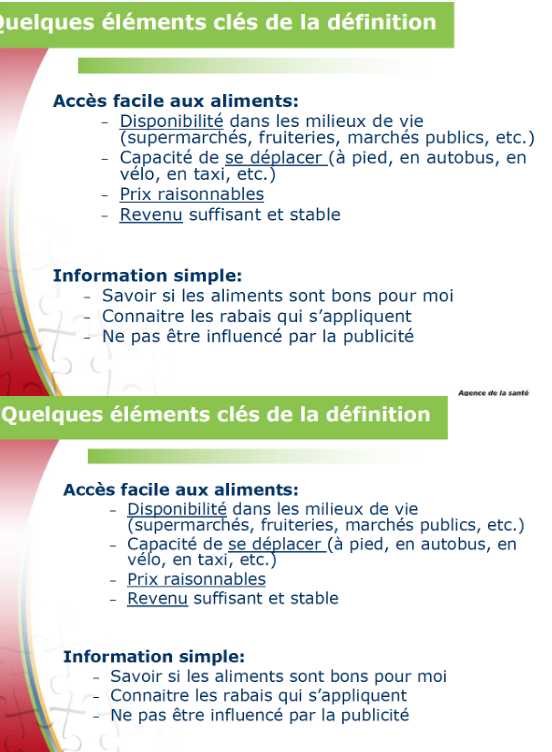 Ainsi, la justice sociale est vue comme la solution à l’insécurité alimentaire des individus et des familles et à l’amélioration de la santé de la population.