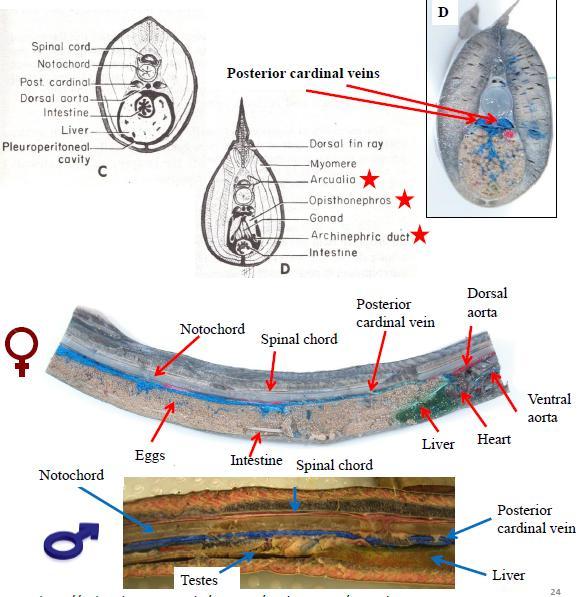 Located along the length of the lamprey, family Petromyzontidae, the posterior cardinal vein is locate underneath the notochord and is on either side of the dorsal aorta.