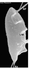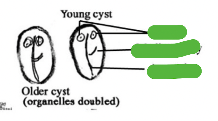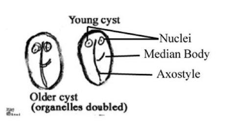 2 nuclei, median body and axostyle