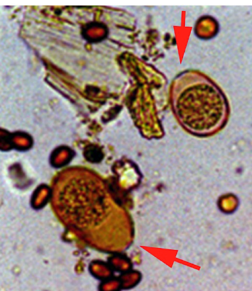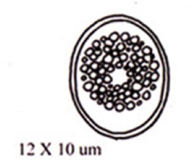(half the size of a whipworm egg- trichuris- lemon shape)