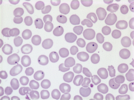 RBC morphological abnormality: Howell Jolly bodies