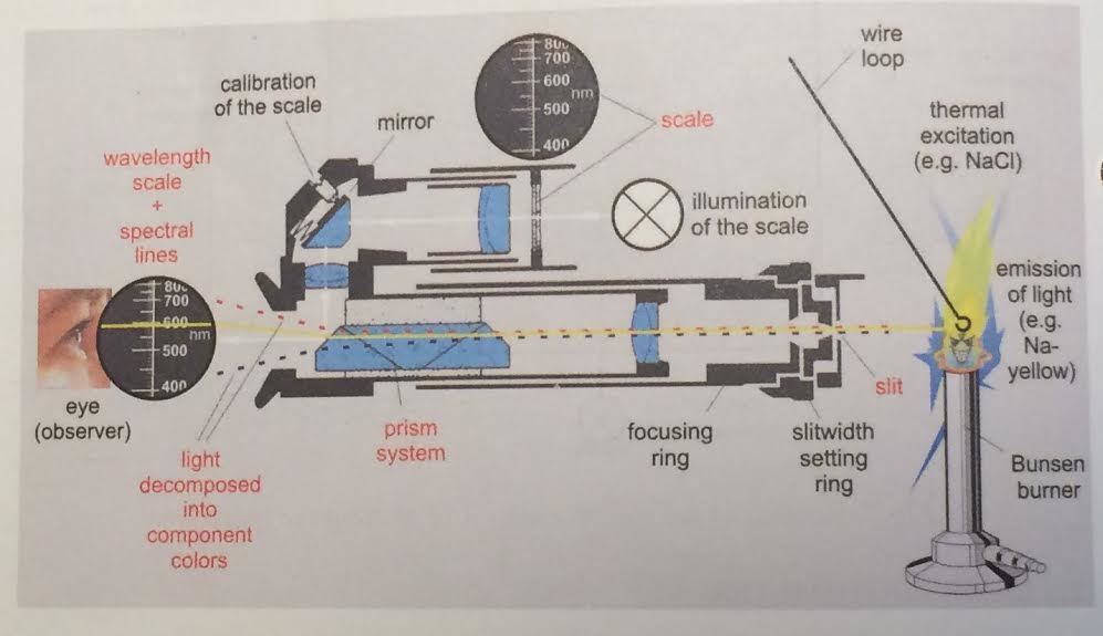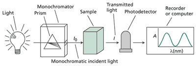 With a monochromator which disperses light into its component wavelengths using either a prism or optical grating