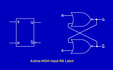 An active-HIGH input RS latch is constructed of two NOR gates.