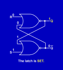 When a latch’s Q output is HIGH and its Q output is LOW, the latch is considered SET. This output state is also referred to as the HIGH or 1 state.