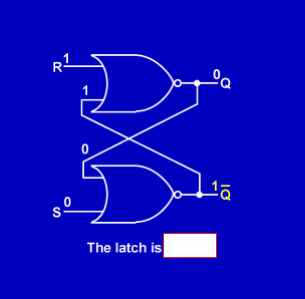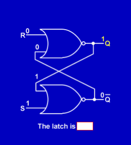The two inputs are SET (S) and RESET (R) and the two outputs are Q and Q. Remember that when the latch is SET, Q is ___and Q is ___. When the latch is RESET, Q is ___ and Q is ____.