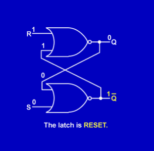 When a latch’s Q output is LOW and its Q output is HIGH, the latch is considered RESET. This output state is also referred to as the LOW or 0 state.