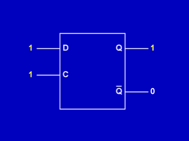 A HIGH applied to the DATA or D input sets the output state to a HIGH Q when the clock input is HIGH.