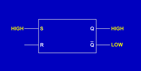 The RS flip-flop has two inputs and two outputs. A HIGH applied to the S (SET) input sets the output Q HIGH and output Q LOW