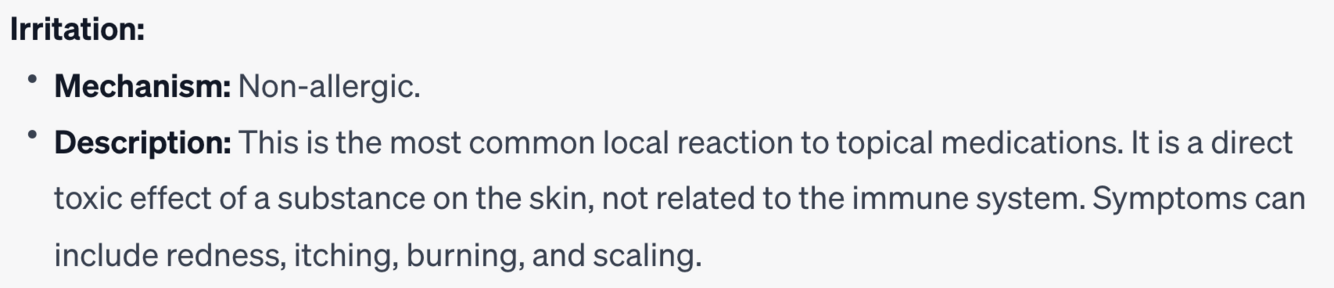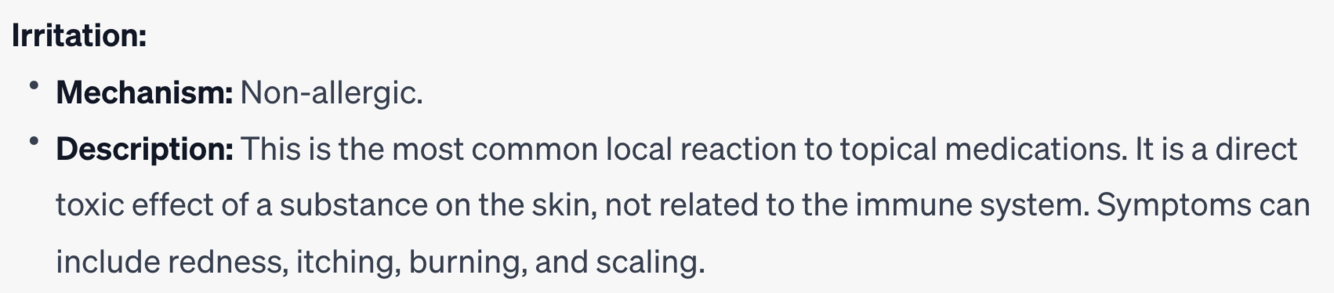 Which reaction type is limited to topical use due to systemic toxicity concerns?
