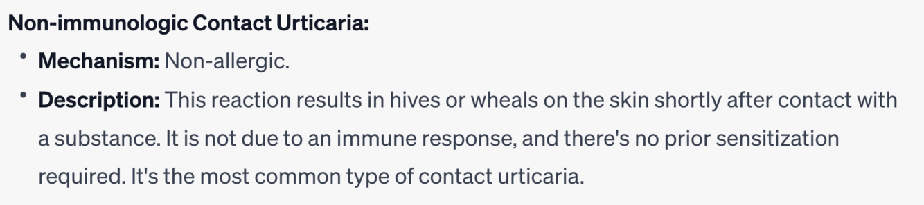 d) Non-immunologic contact urticaria