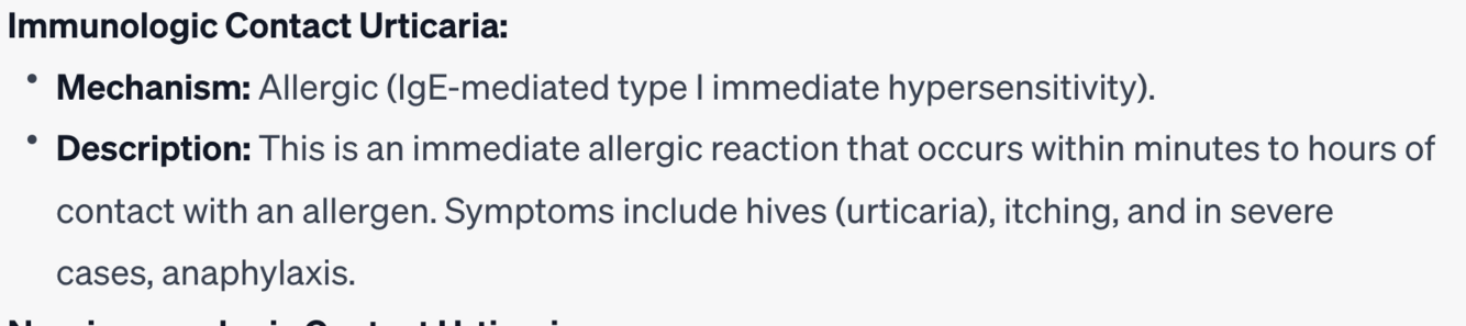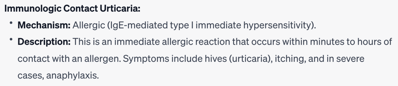 c) Immunologic contact urticaria