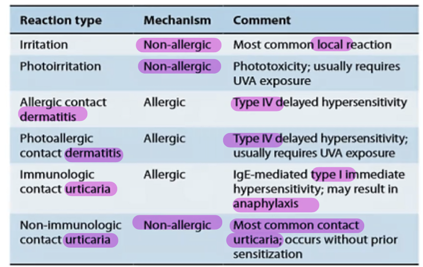 Which reaction type is directly related to a toxic effect of a substance on the skin?