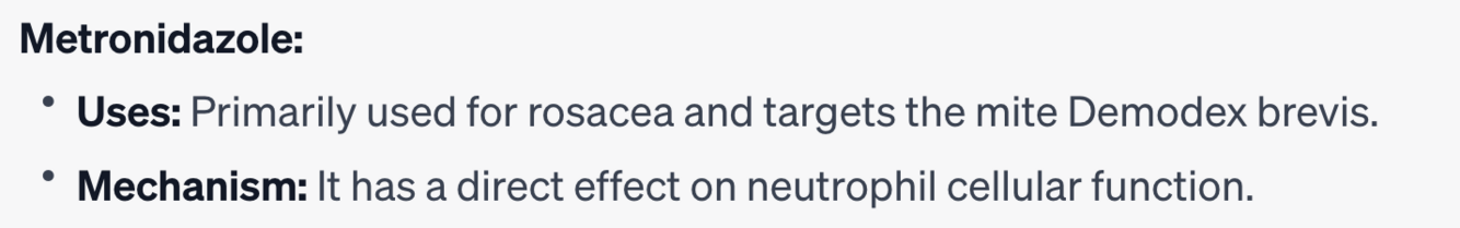 Which of the following antibiotics is primarily used for rosacea and targets the mite Demodex brevis?