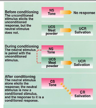 a type of learning where an initial neutral stimulus acquires the capacity to evoke a response that was originally evoked by another stimulus
