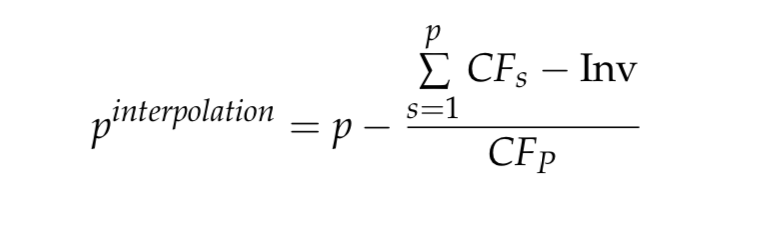 It is the normal payback plus a correction, such that if the project cash flows in p are greater than what it takes to break even, the payback will be adjusted downards.