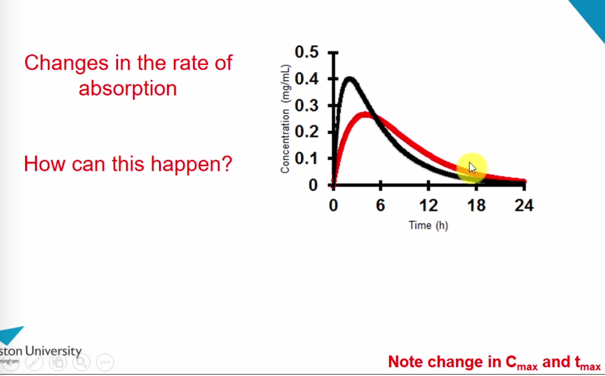 Drug absorption rate constant (Ka)- Changes in the abosrption rate