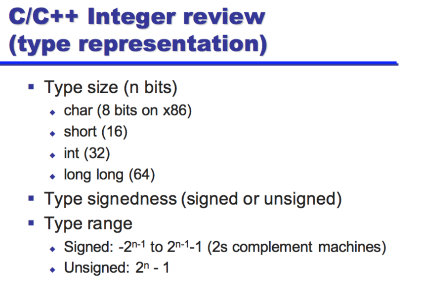 How many bits in a char, short, int, long long, and what are the ranges os signed vs unsigned?