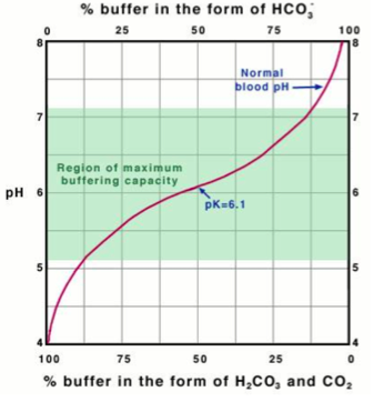 1) [H2CO3] modulates with breathing rate, affecting CO2levels in the blood - rxn becomes more acidic