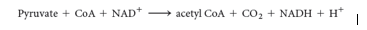 pyruvate + coA + NAD+ –> acetyl coA + CO2 + NADH + H+