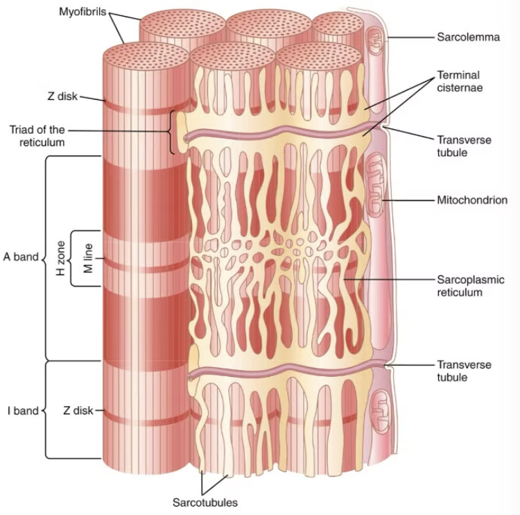 Actin and myosin filaments - arranged in tube-like structures