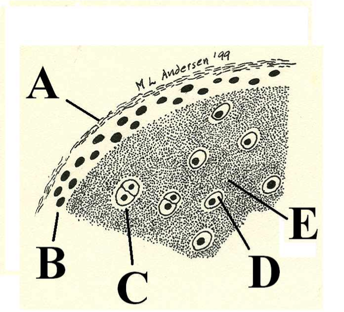 Gives rise to chondroblasts, which become chondrocytes Chondrocyte is involved in production of collagen and proteoglycans in the matrix. Also secrete chondronectin