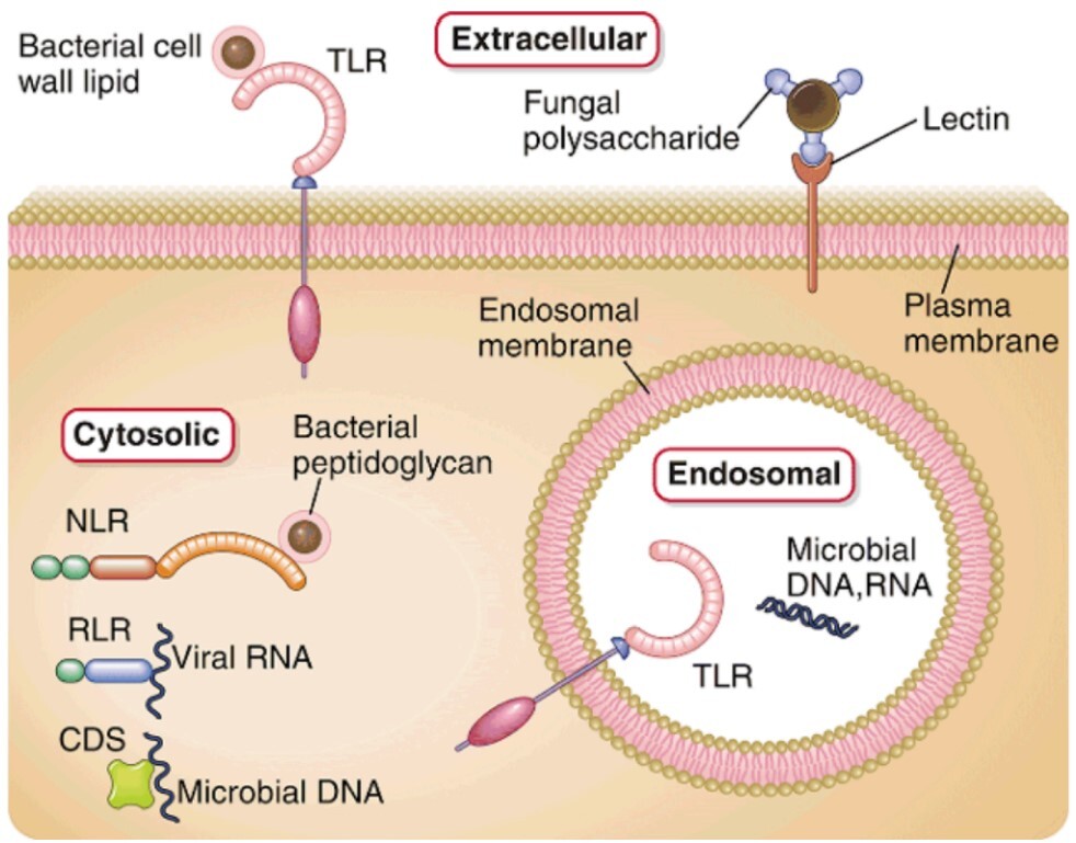 - Classes: Endosomal receptors, Cytosolic receptors, Membrane bond