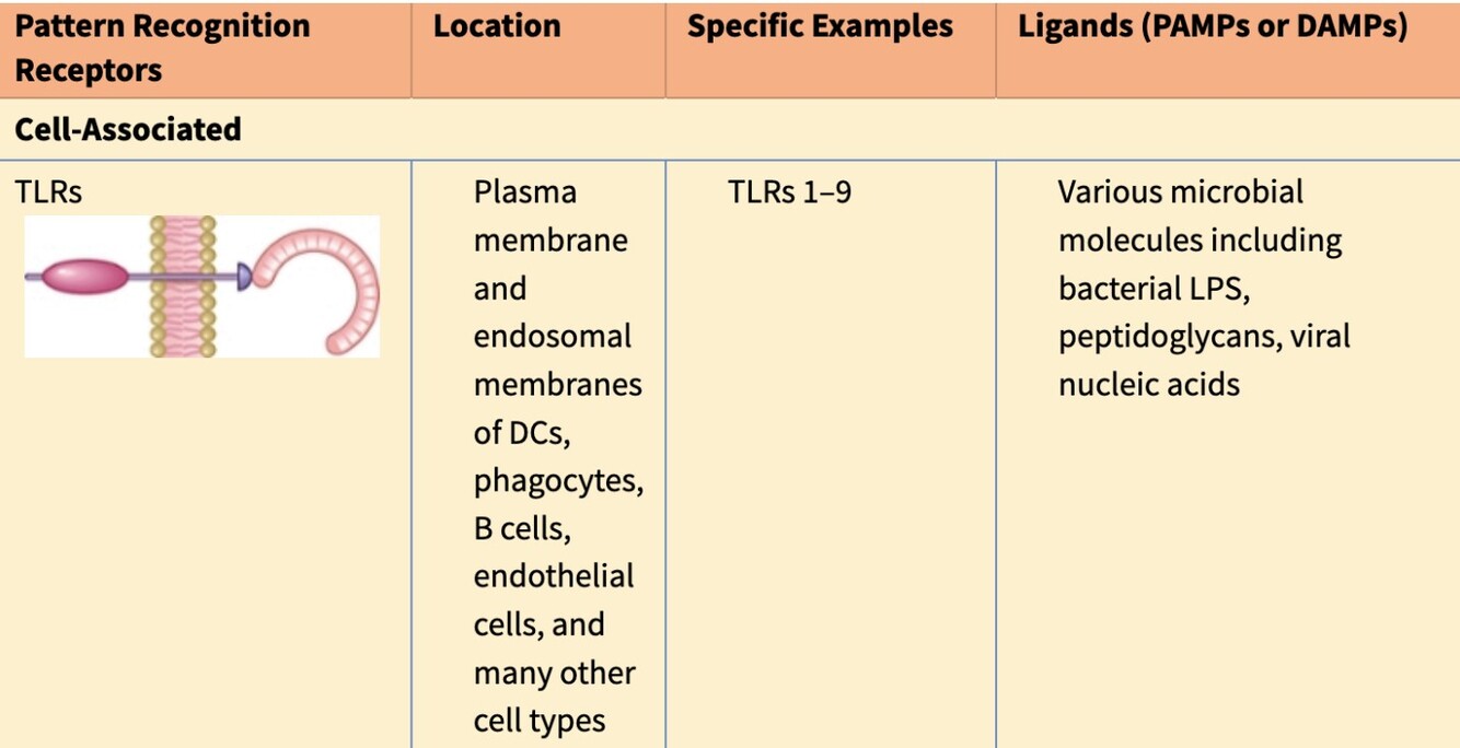 - Ligands are microbial molecules (e.g. bacterial LPS, peptidoglycans, viral nucleic acids)