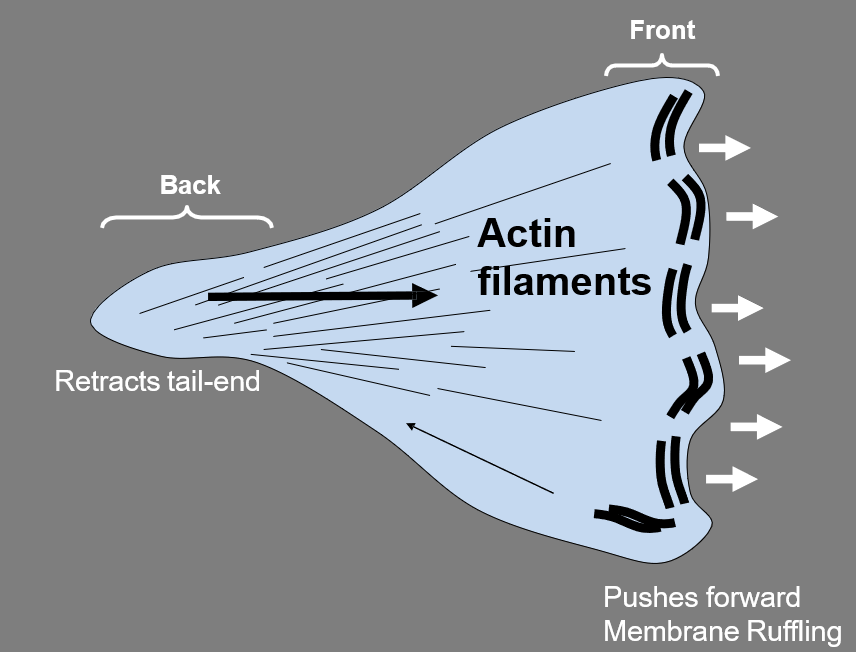 Actin is a globular protein in eukaryotic cells. Actin is able to polymerize through the use of ATP. When ATP is bound to actin (ATP-bound actin) it creates an actin oligomer. This elongated actin cytoskeleton can push membranes forward. When ATP is hydrolyzed, ADP-bound actin falls of the oligomer and the oligomer is broken down again. This process makes cells like endothelial cells deformable.