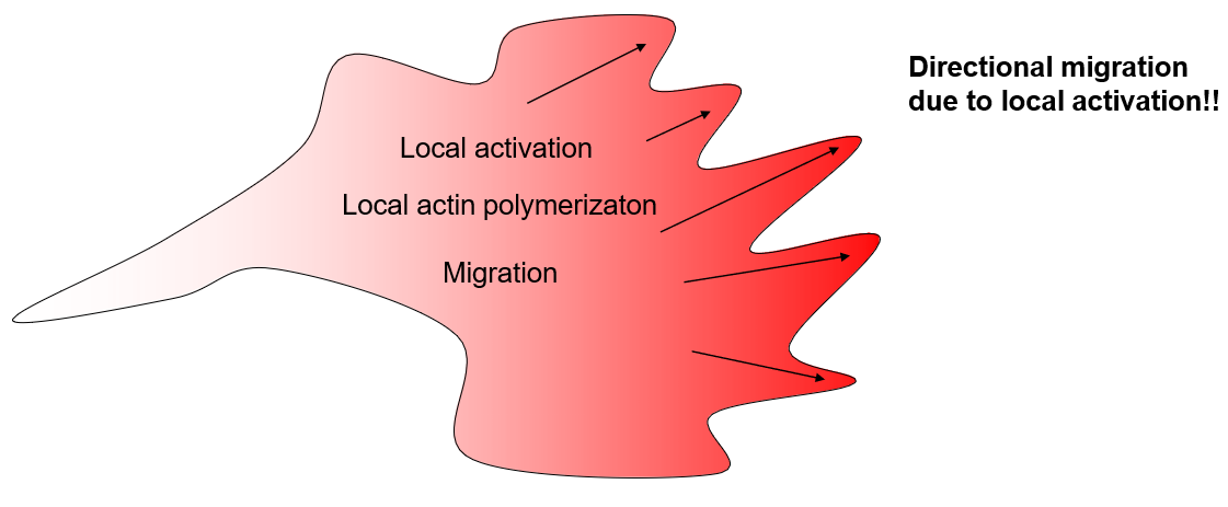 Yes. This process cannot be random, because this will lead to no assymetry and no polarity. So you need local activation for directional migration, which is facilitated by chemokines.